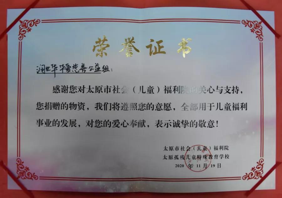 润世华新能源控股集团“华爱慈善公益志愿组”走进山西省社会儿童福利院开展捐赠活动