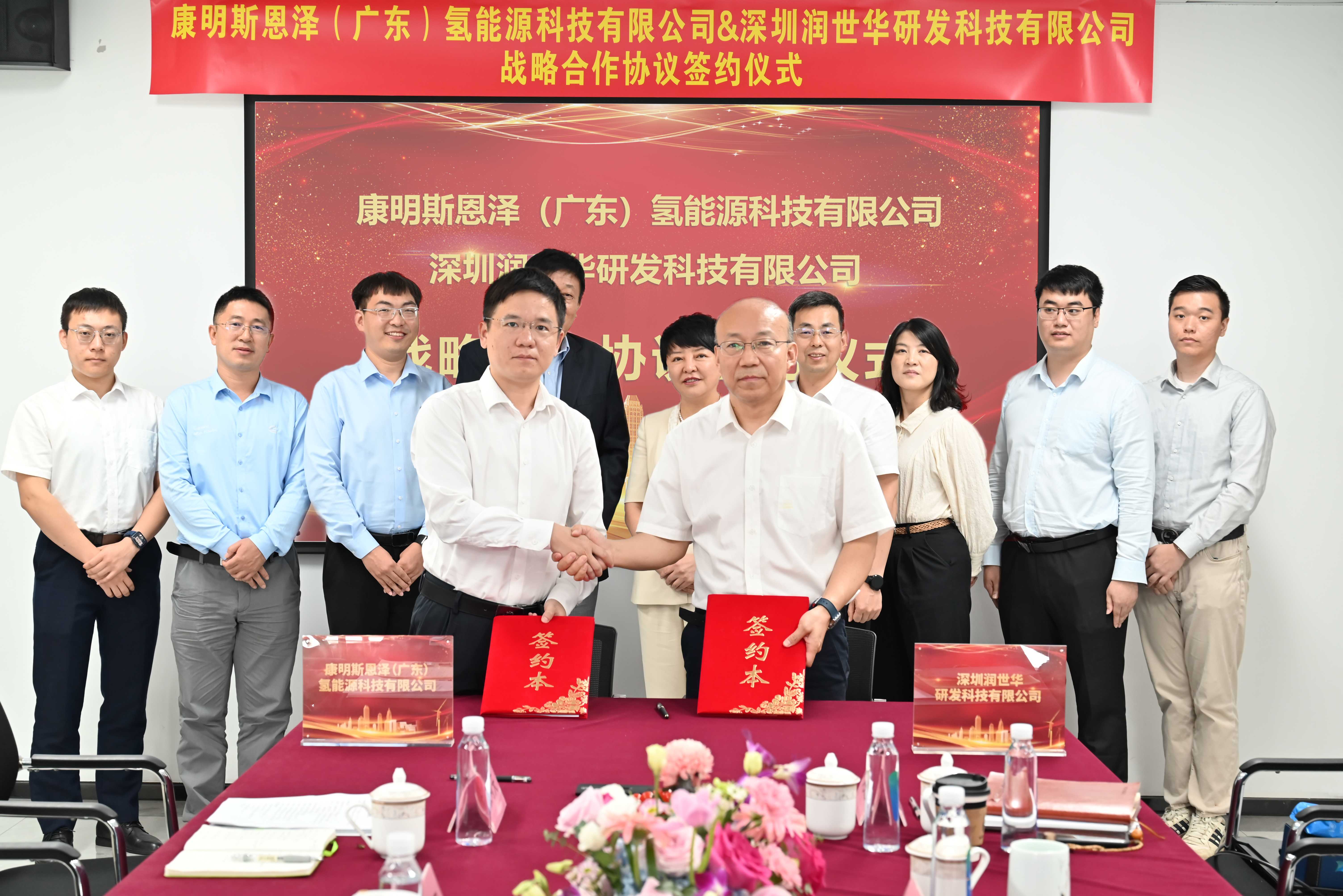 10月25日上午,深圳润世华研发科技有限公司(下称“润世华研发科技”)与康明斯恩泽(广东)氢能源科技有限公司(下称“康明斯恩泽”)在深圳龙岗创投大厦举行合作协议签订活动。集团董事长张锦辉、润世华研发科技总经理马建勇、润世华软件和信息技术服务总经理赵张锋、润世华新能源控股集团战略投资部主任刘奕萱与康明斯恩泽总经理赵留军、康明斯恩泽执行总监张可夫等领导出席签约仪式。