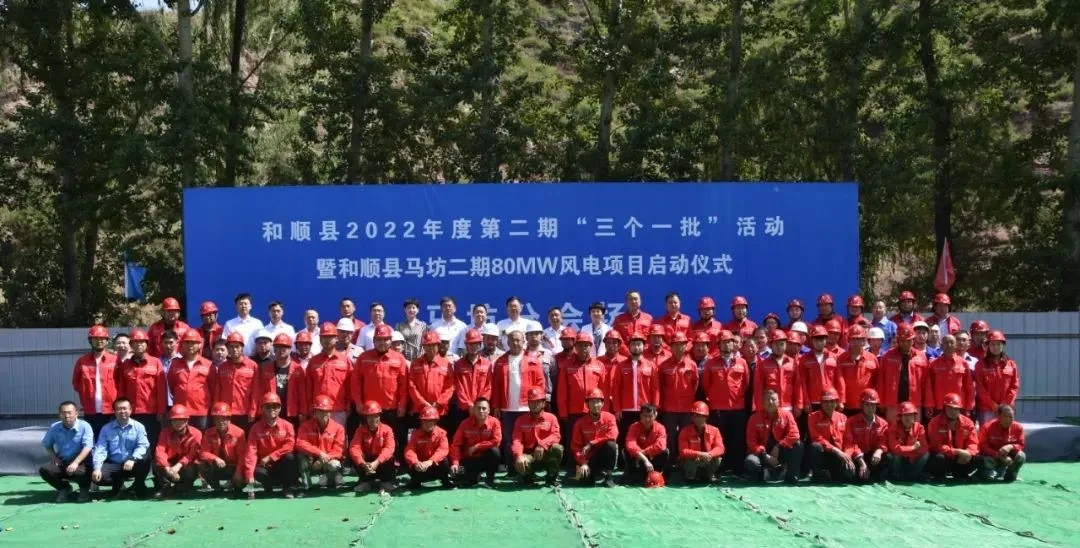 和顺马坊80MW风电项目启动仪式,是和顺县委县政府响应全省“三个一批”活动,由政府组织统一举行的。该项目是上海斯能在和顺县的第二个新能源项目,总投资约4.3亿元,采用16台单机容量为5.0MW的风力发电机组。